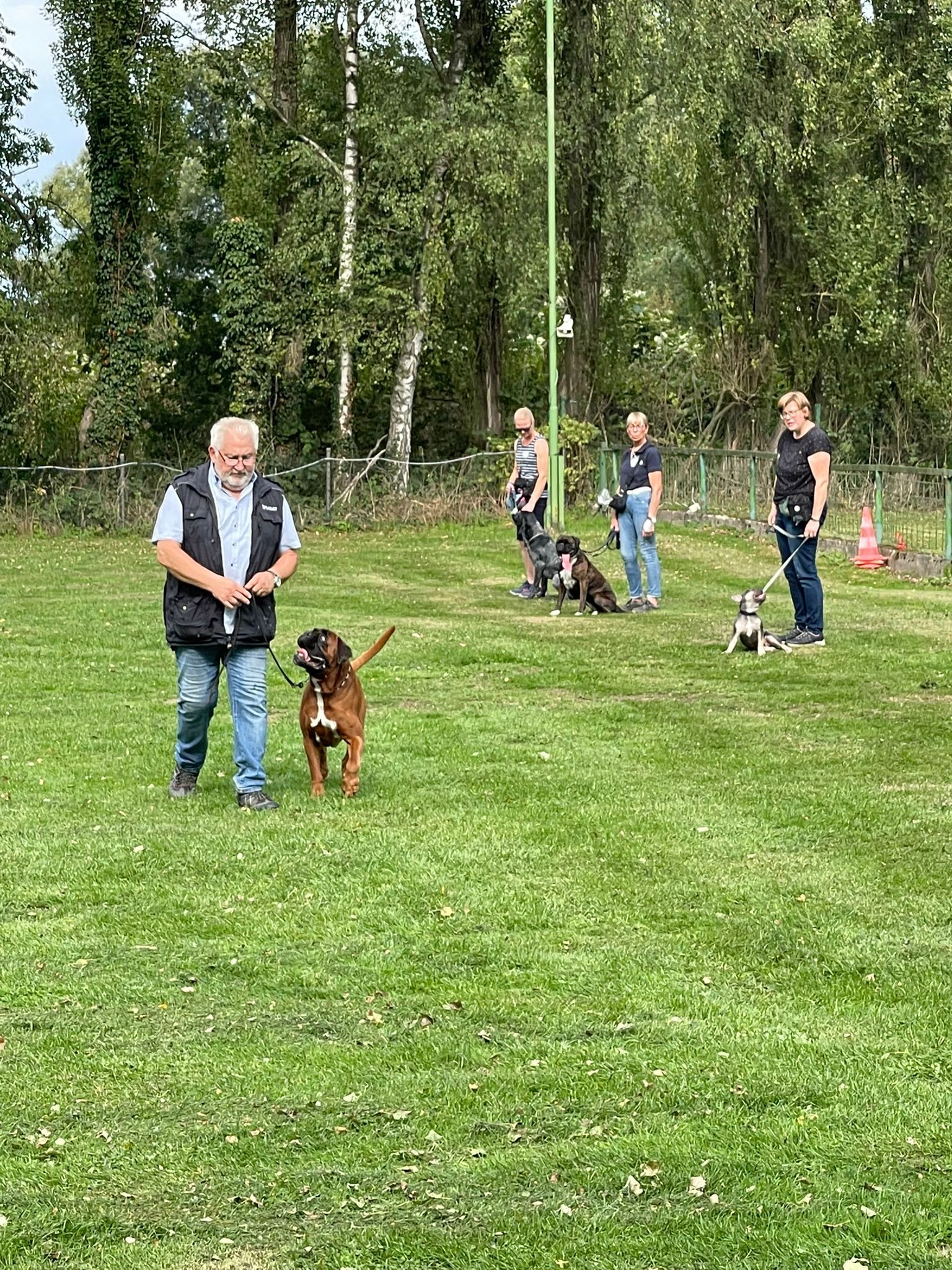 Am zweiten Übungstag stand für die Teilnehmer das Thema "Leinenführigkeit" auf dem Plan. Die Leinenführigkeit ist für ein Großteil der Hundeführerrinnen und Hundeführer das schwierigste in der Ausbildung ihrer Hunde. Aber mit den hilfreichen Tips und der nötigen Konsequenz und Beharrlichkeit klappt es dann auc.